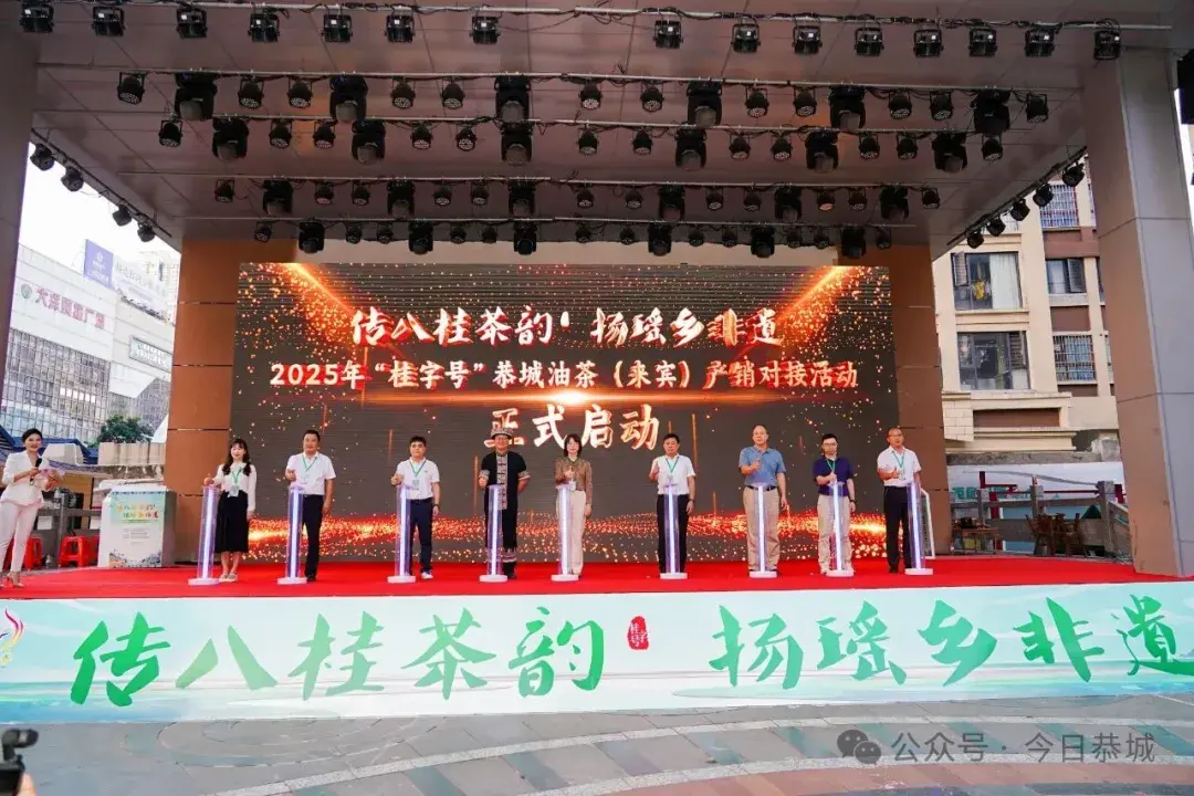 10月11日,2025年“桂字号”恭城油茶(来宾)产销对接活动在来宾市兴宾区政和步行街隆重举行。本次活动以“传八桂茶韵,扬瑶乡非遗”为主题,旨在通过“线上线下联动、品牌宣传与文旅融合”的创新模式,集中展示恭城油茶的独特魅力与产业链价值,推动“恭城味道”走向更广阔的市场。恭城瑶族自治县人民政府副县长钟础富,自治区农业农村厅市场与信息化处副处长王静,桂林市农业农村局副局长邓岩松出席活动。